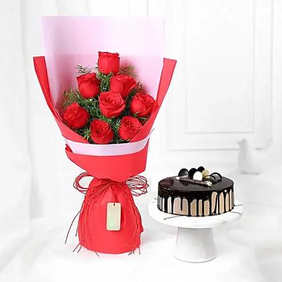 8 Red Roses with Choco Cream Cake Combo 1/2 Kg