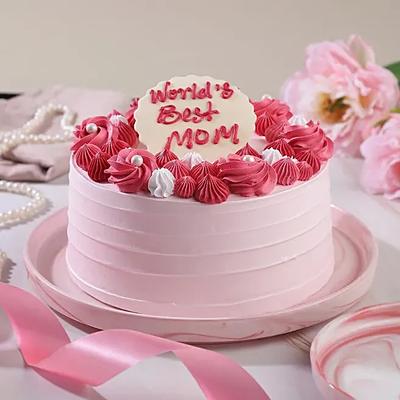 The perfect gift for your mom on any special occasion. This eggless cream cake boasts a delicious butterscotch flavour thats sure to satisfy her sweet tooth. The different shades of pink rosettes on top add a touch of elegance and sophistication to the overall appearance. Give your mom the gift of sweetness with this stunning cake.