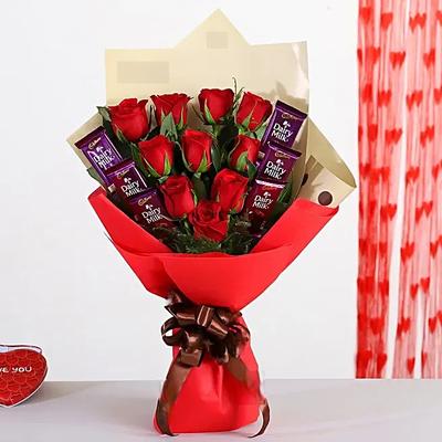 Bunch Of 10 Red Roses With Dairy Milk Chocolates