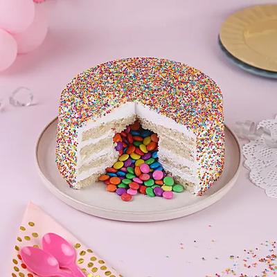 Experience the explosion of flavour with every bite of this delectable cake. This round cream cake is filled with the delicious goodness of pineapple, which will leave your taste buds wanting more. This eggless version of the cake is suitable for everyone to enjoy. Expertly decorated with colourful sprinkles all around, this cake is a treat for both the eyes and the taste buds.
