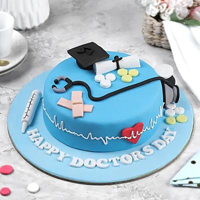 Celebrate the dedication and compassion of your loved one with this exquisite fondant cake rich in decadent chocolate flavour designed with a unique doctor theme making it the perfect surprise for medical professionals or aspiring doctors. Crafted with intricate details it beautifully captures the essence of the medical field while offering a deliciously indulgent treat. Ideal for birthdays graduations or special milestones this cake is a heartfelt way to honour their hard work and passion.