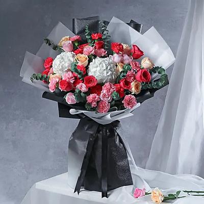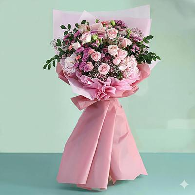 Similar to Butterfly Garden, this floral arrangement is also wrapped in a butterfly-shaped mesh, offering an exotic and unique look. Baby pink carnations, avalanche roses and the detailing with peach roses are a beautiful combination for a grand romantic gesture. To say this magnificent combo is a perfect Valentine's Day flower option would be an understatement.