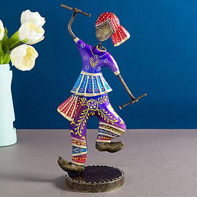 Gujarati Man Playing Dandia Showpiece Multicoloured