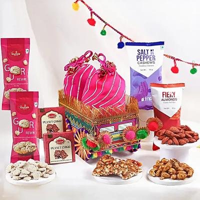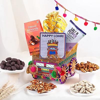 Lohri, the vibrant harvest festival of Punjab, marks the end of winter and celebrates abundance, joy, and prosperity. This auspicious occasion brings families and friends together to rejoice around bonfires, sing traditional songs, and share delectable treats. It's a time to express gratitude for nature's bounty and strengthen the bonds of love and togetherness. Make this Lohri unforgettable by surprising your loved ones with thoughtful gifts from Blissmygift. Our Lohri gift hampers are curated to spread warmth and happiness. Whether it's a Dry Fruits hamper for health-conscious loved ones or a delightful selection of sweets online such as gond paak, til mawa laddoo, peanut chikki and more, we have something for everyone. Our exclusive Lohri gifts include premium-quality items like gourmet treats, traditional sweets, and festive essentials beautifully packaged to add a touch of elegance. Blissmygift's seamless gifting options make it easy to share Lohri's joy with your family and friends, no matter where they are. From stunning floral arrangements and personalised gifts to luxurious hampers, every item is crafted to reflect the festive spirit. Celebrate Lohri on 13th January 2026 with Blissmygift's exquisite Lohri gifts and make the festival even more meaningful. Explore our premium collection today and deliver happiness right to their doorstep.